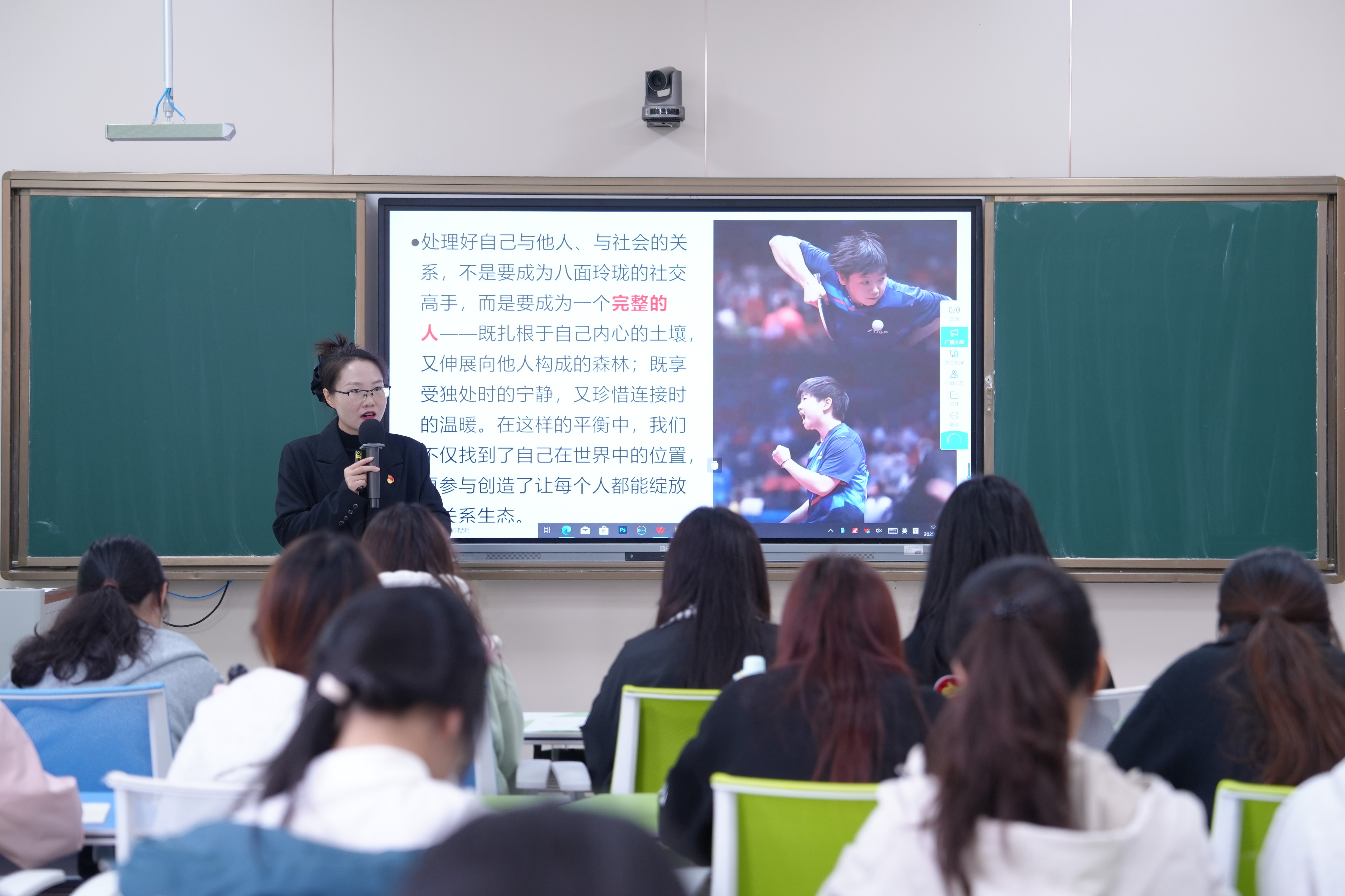 第二节培训课程,教育学院副院长蒙剑英以两项精心设计的测试开启“向阳而行”专题培训,这两项测试旨在促使学员清晰认知自我,同时学会了解他人。蒙老师强调,学员要平衡好自我与他人的边界,在人际互动中实现动态平衡,最终成长为品格完善、全面发展的新时代青年。