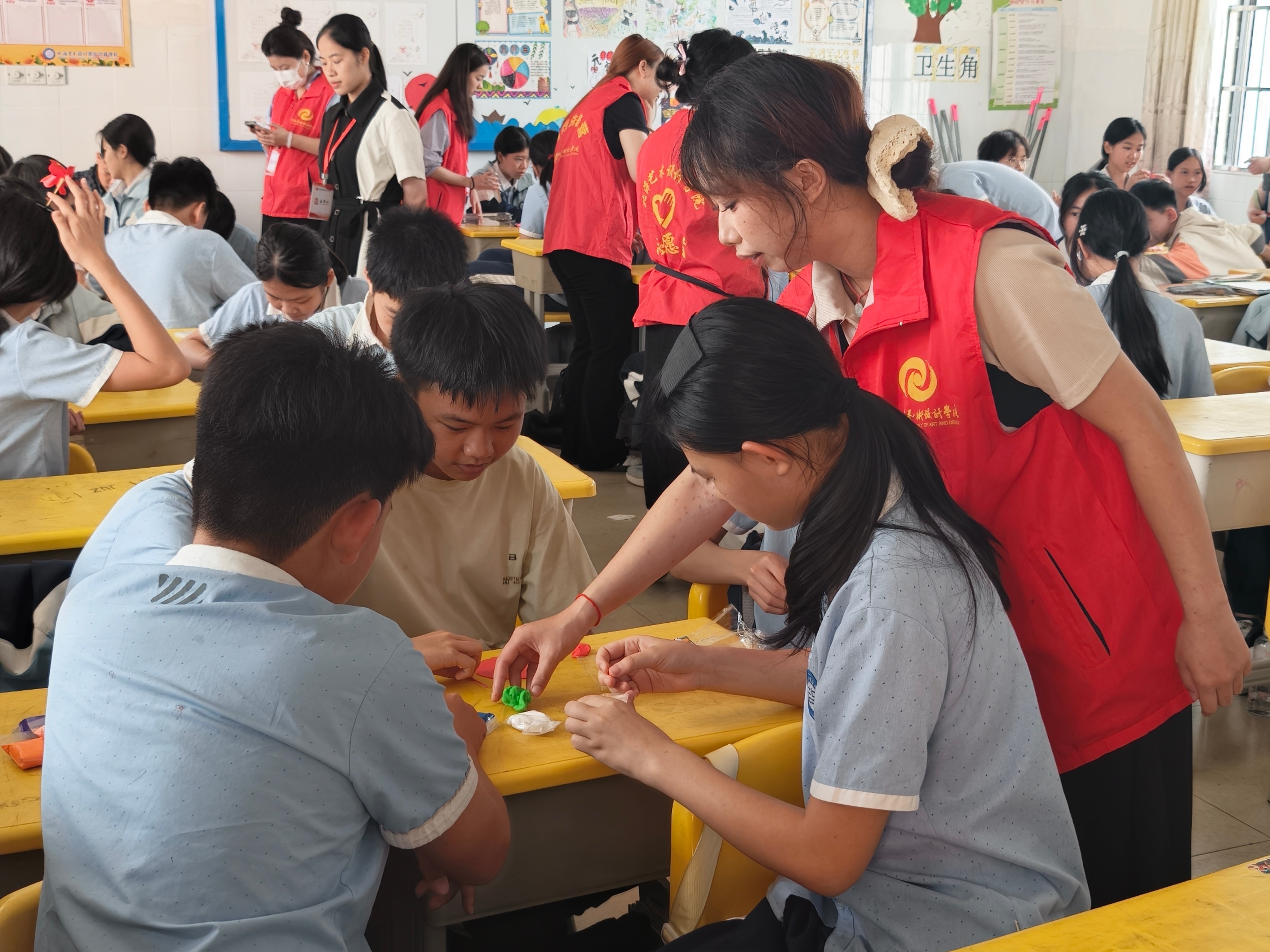 班会现场,有小组结合北海丰富的红色资源与厚重的革命记忆,化身“红色导师”,向小学生们生动讲述地角女民兵的坚守、钟竹筠等革命先烈为信仰献身的壮举、解放涠洲岛等故事有小组开展手工实践环节,耐心指导小学生们进行和平鸽黏土制作,将对先烈的缅怀、对和平的向往融入指尖让红色精神与和平理念在手工实践中落地生根。也有小组在班会结尾带领小学生进行宣誓,在庄严的仪式感中,使他们深刻理解了清明节缅怀先烈的意义,也坚定了传承红色血脉、铭记北海历史、争做时代新人的信念。