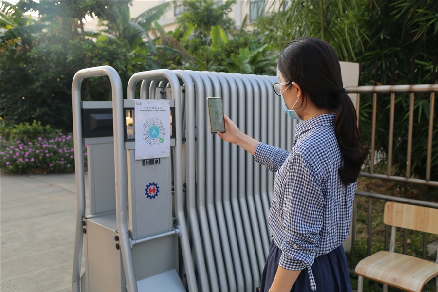 本次模拟演练按照预定流程开展返校进入校门、返回宿舍、教室上课、食堂取餐等四个环节演练。模拟学生返校后,消杀行李、扫码入校、测量体温、核验身份进入校园;返校经体温测量、扫码验证进入宿舍;上课时经体温测量进入教学楼;下课前往食堂排队测温取餐的四个场景。针对各个场景中出现发热学生实施应急处置进行了重点模拟演练,展示了体温复测、询问诊断、隔离处置、报告疫情、转移病人、现场消杀、心理安抚等系列处置过程。
