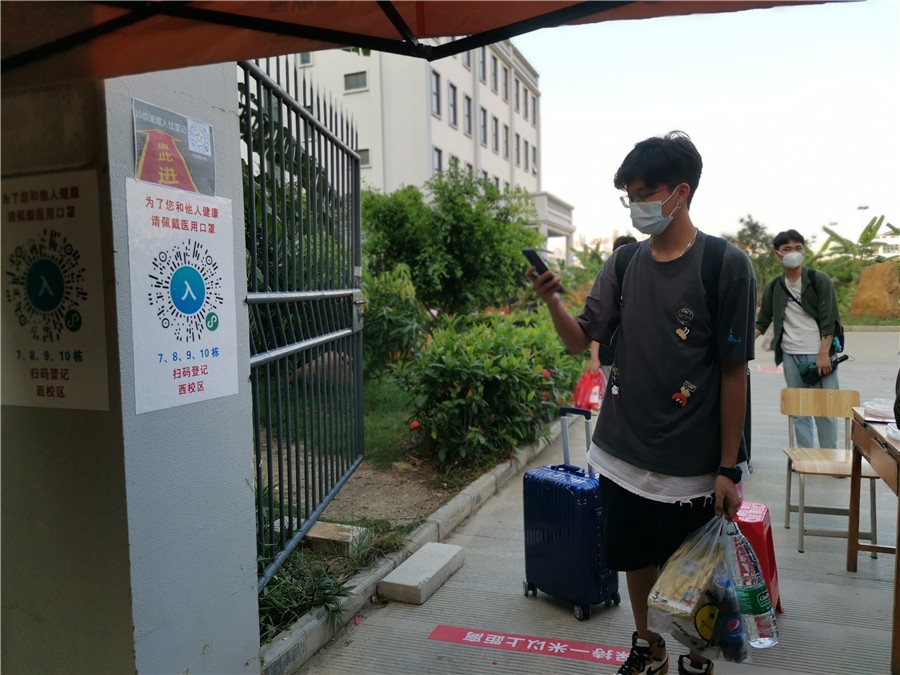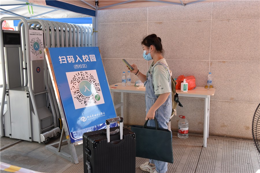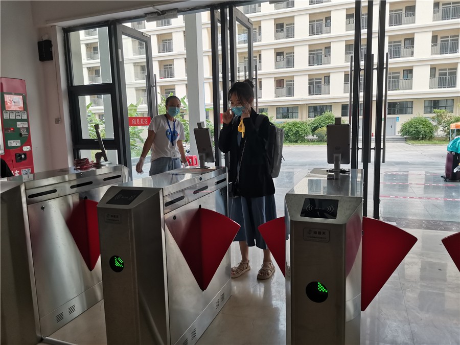 学生抵达学校后,在学校工作人员的指挥安排下,在入校通道按照“消杀行李、查验健康码、测量体温、扫码入校、核查身份”的流程完成报到手续。为了应对学生体温异常等突发状况,学校医务人员全程在报到点值守,快速处理体温异常等突发情况,确保每一位入校学生的健康安全。学生进入宿舍经过二次体温检测和身份核验,确保万无一失。返校报到各环节分工明确,各司其职,现场井然有序。