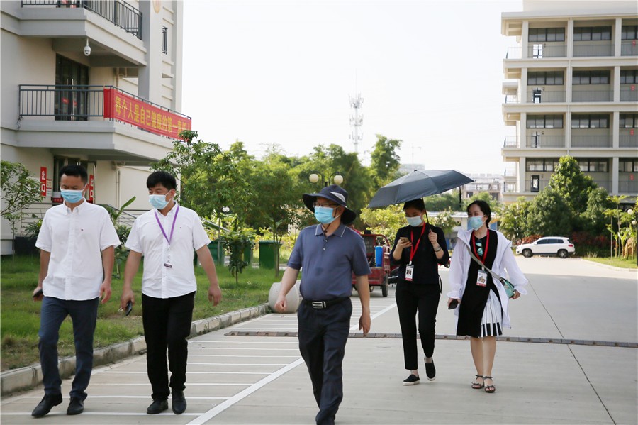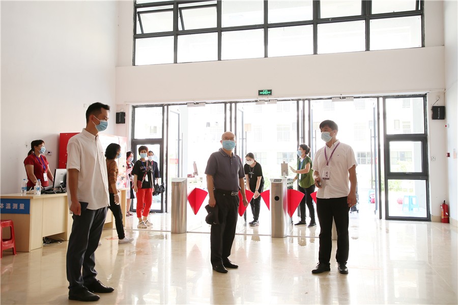 学生返校当天,党委书记李高南、党委副书记兼副校长彭仁、副校长胡胜、学工部部长刘承初等学校领导实地走访察看了校门口报到点、学生公寓、食堂等重点场所,关心询问学生返校情况,慰问在烈日下工作的教职工,对大家的辛苦付出表示肯定,鼓励大家在做好个人防护的情况下,以高标准严要求完成各项返校接待工作。