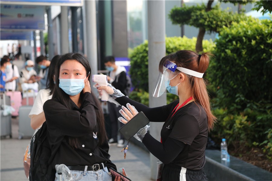 为了科学有序做好学生返校工作,学校前期多次召开会议部署学生返校接待工作。提前统计学生的返校时间,在火车站、机场设立了专门接站点,根据人流量统筹调度接送车辆。学生到达站点后经过测量体温、信息登记、扫码上车,顺利乘坐专车直达学校门口,实现了从车站到学校的无缝连接。