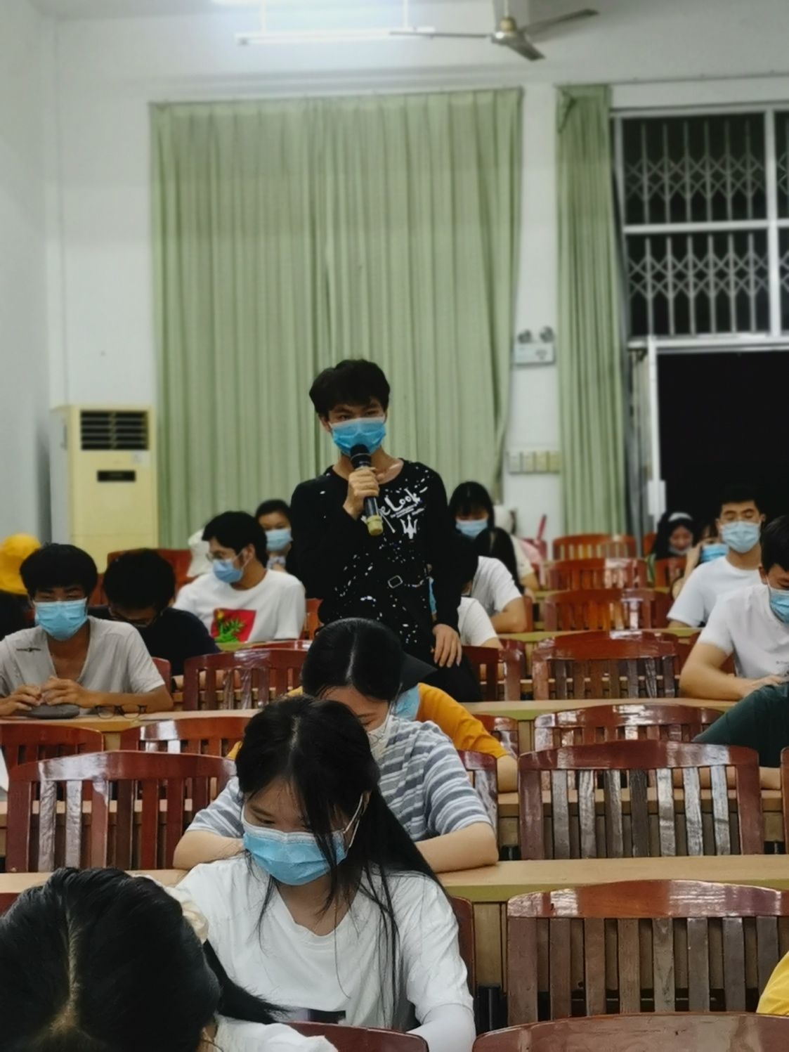 李水亮副院长向师生们展示了学校第三期建设施工工程图,他娓娓道来了北艺建设史、石头文化等等体现北艺的精神风貌。这所年轻的本科高校正焕发出勃勃生机,在扎根中国北海的土地上创建世界一流大学的道路上砥砺前行。 李院长希望同学们要珍惜在北海的几年大学时光,勤奋学习、听从指挥,树立为国家读书的理想。希望同学们要有正确的消费观,要懂得比素质和能力、比谁更富有为同学服务的爱心,顾全大局,团结奋进。当前的疫情就是战争,美国不断地制造事端,制裁中国企业,制裁中国的大学,还不断在中国的领空领海周围挑衅,这说明了国际形势非常复杂,同学们要有战争意识。
