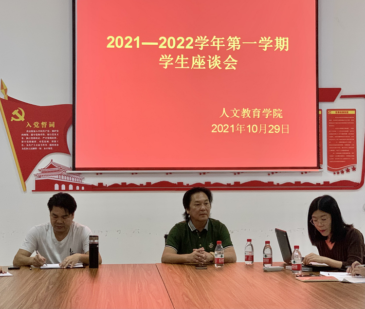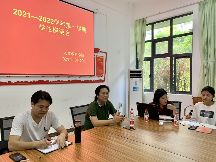 为全面了解我院学生对学院教育教学、管理服务等方面的意见和建议,进一步增强我院教学质量和管理服务工作的针对性和实效性,提高广大学生的学习热情,我院于2021年10月29日下午在行政楼111会议室召开了2021-2022学年第一学期学生座谈会。此次会议由院教务办主任马芬主持,参加会议的有人文教育学院副院长李水亮、汉语言文学教研室主任陈敢、哲学教研室主任潘家猛、学工办主任谢伟及学院11个教学班的20名学生代表。
