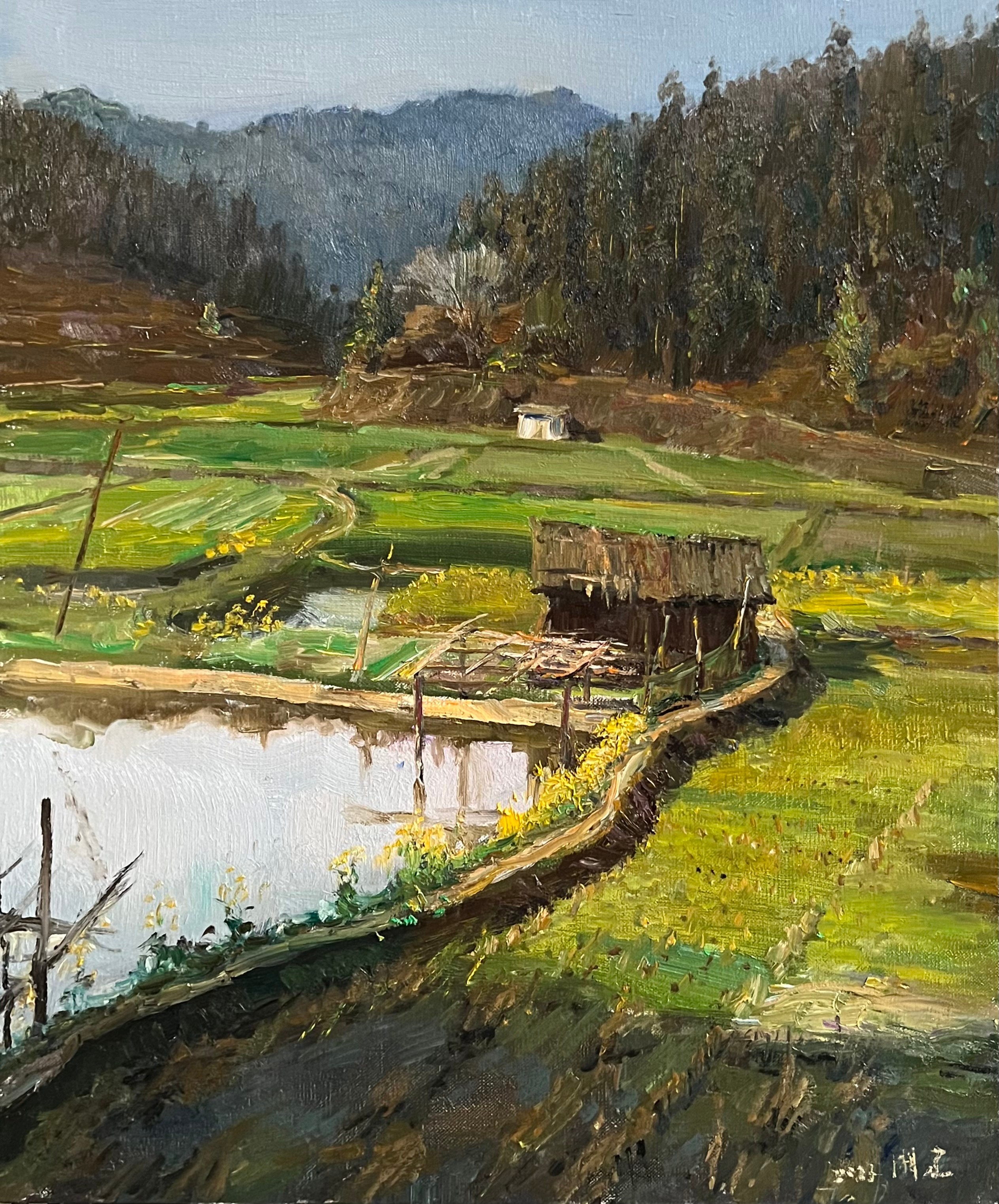 渔塘边的油菜花》 60x70cm