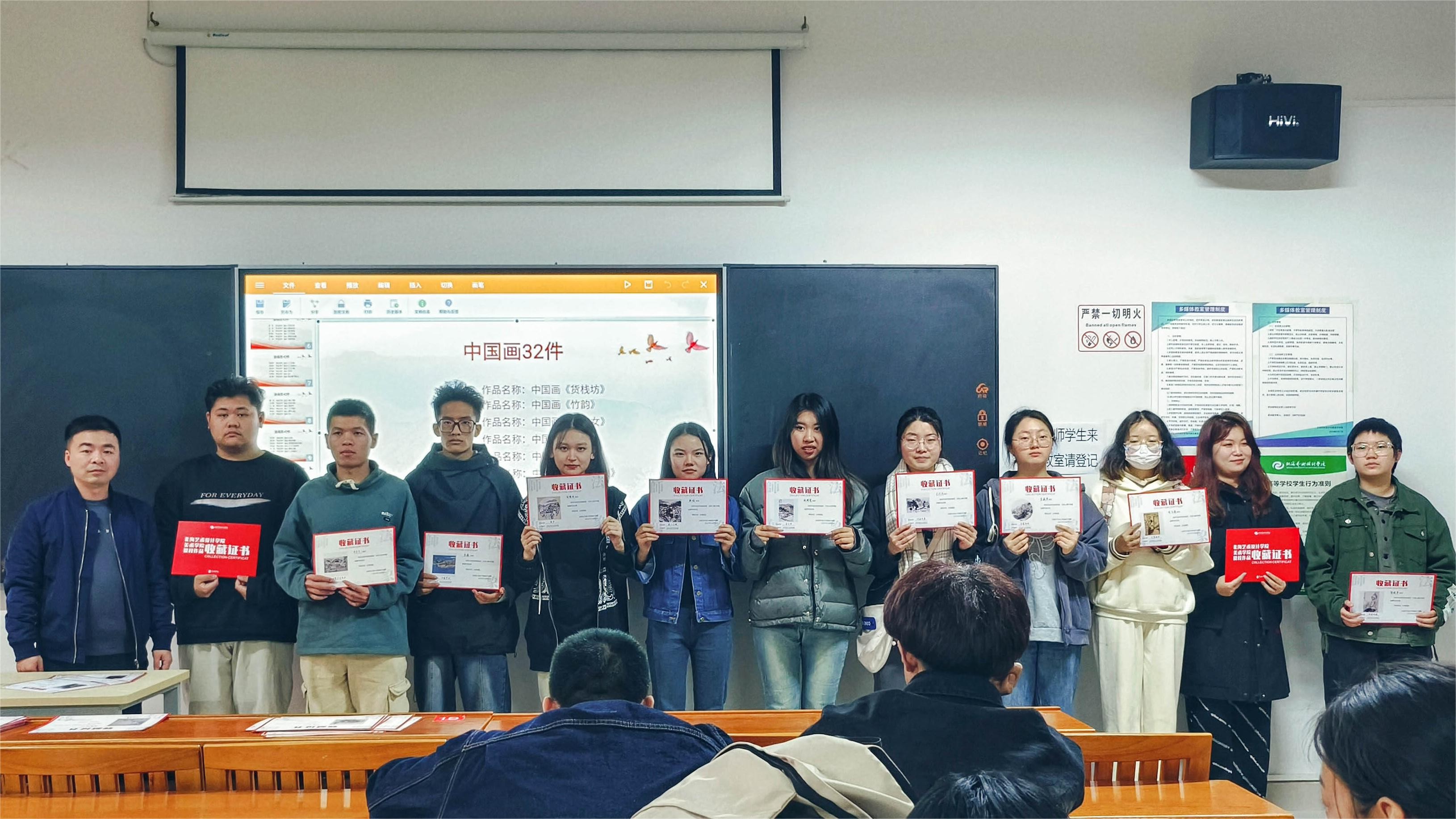 2023330日下午1830,美术学院于艺术楼314举行美术学院探索非遗文化·丹青侗乡风采”美术学院2023年柳州三江专业写生作品收藏颁奖仪式。本次活动出席的嘉宾有北海艺术设计学院美术学院副院长、专业写生系列课程负责人肖玺,北海艺术设计学院美术学院绘画教研室主任张湘中,北海艺术设计学院美术学院实验室主任袁志伟、北海艺术设计学院美术学院美术学教研室主任陈建江,以及美术学院绘画专业部分师生。本次颁奖仪式由肖玺副院长主持。