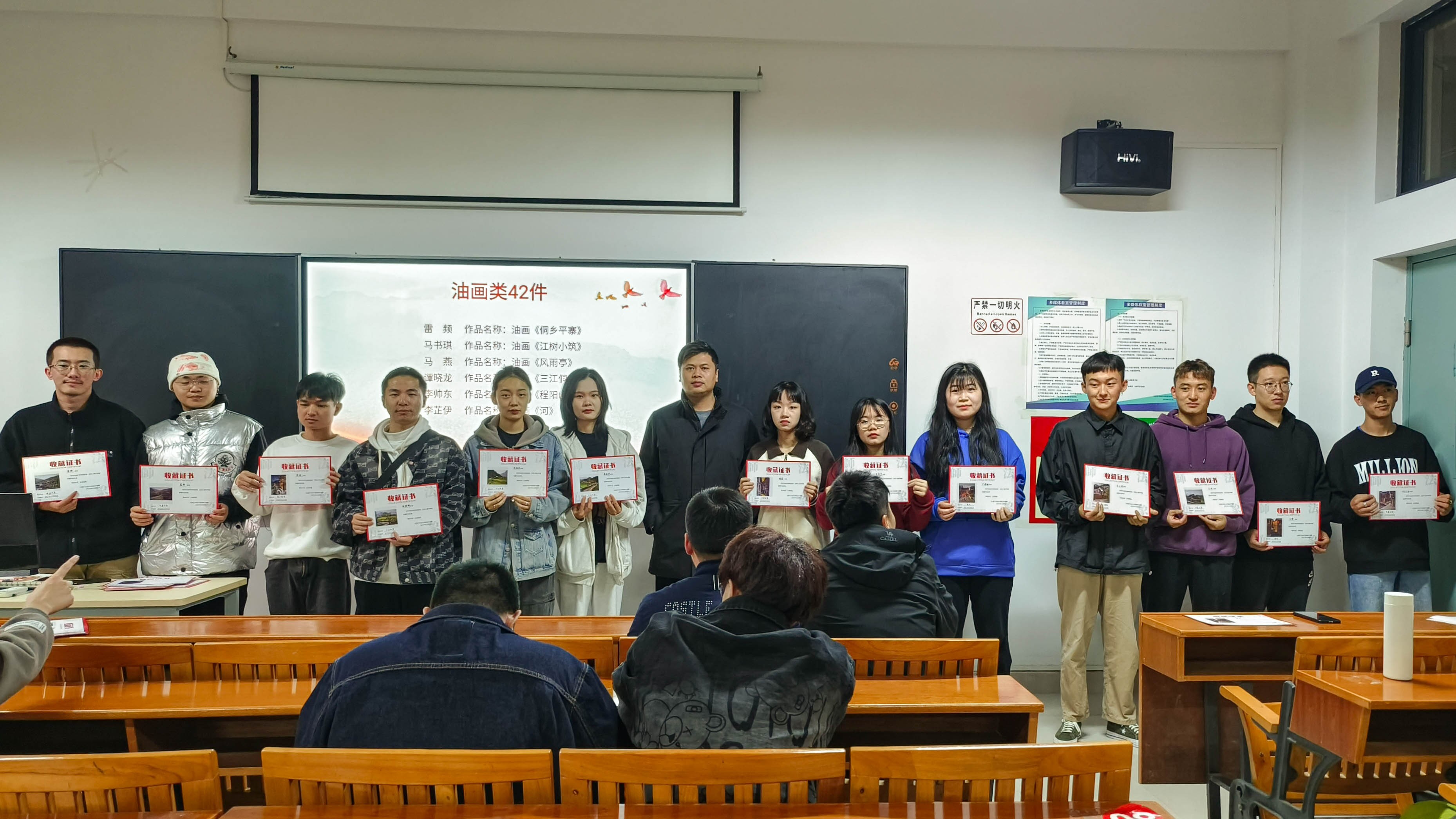 本次写生课程,由校内外专家、教授与专业教师共同评审,共选出优秀学生作品86幅,涉及绘画专业油画、中国画、水彩各专业方向。本次获奖学生共72名,其中油画类42件中国画类32件水彩类12件颁奖仪式邀请与会嘉宾颁奖,获奖同学走上领奖台,领取通过他们积极努力,刻苦钻研,深入创作所取得的荣誉与收获。