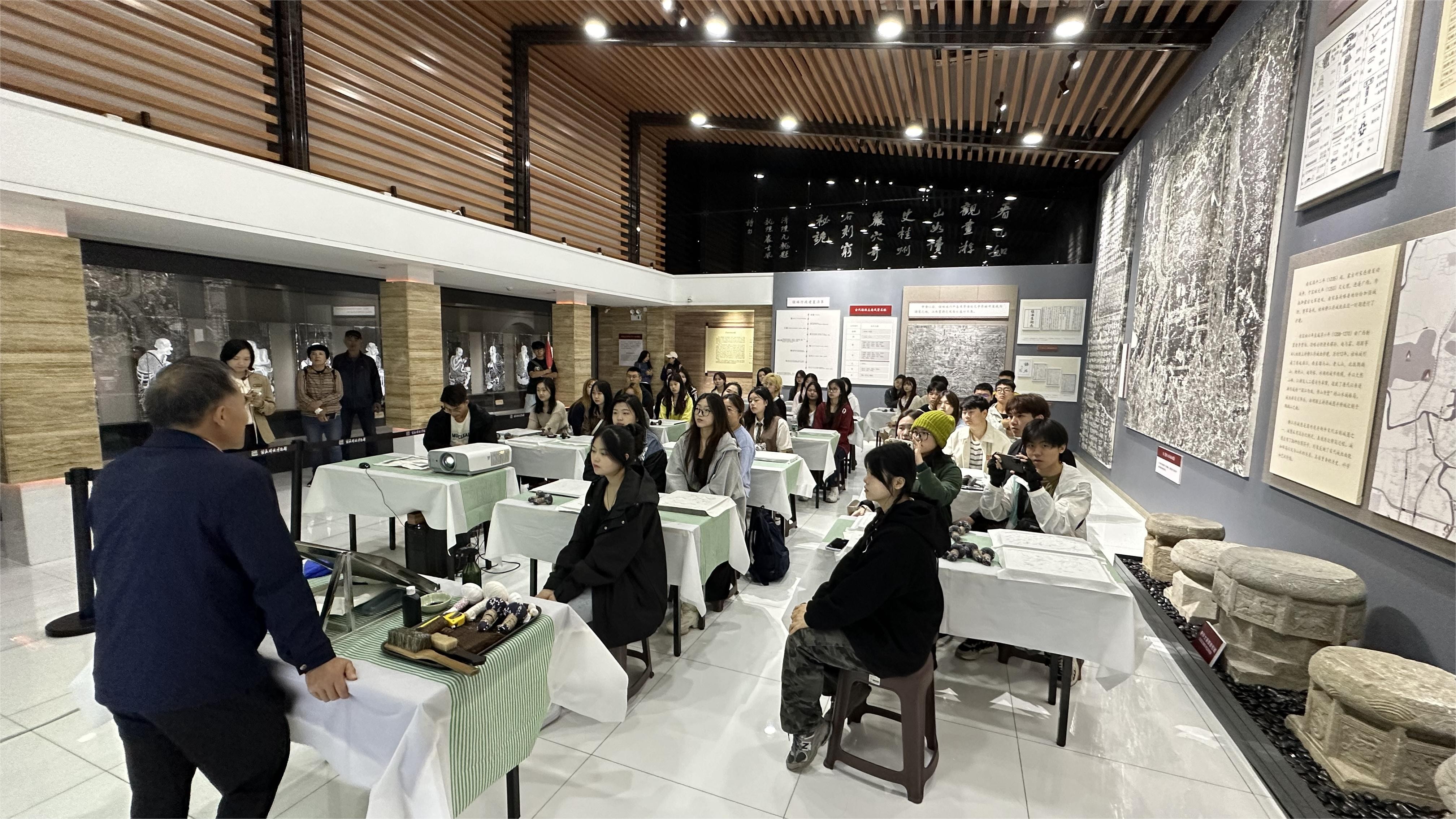 本次采风以桂海碑林博物馆的石刻艺术考察展开在龙隐岩与阳朔山水园的参观中,同学们近距离接触碑刻摩崖艺术,体会唐宋摩崖的艺术魅力陡峭山崖石壁上风格多样形态各异的石刻书法作品深深吸引了同学们的目光与此同时,非遗传承人韦老师带领同学们亲自体验中国碑拓艺术了解造纸术,欣赏玉石文物在欣赏山水风光书法石刻作品的同时,对同学们艺术思维的延伸与审美多样化的拓展具有重要的影响作用。