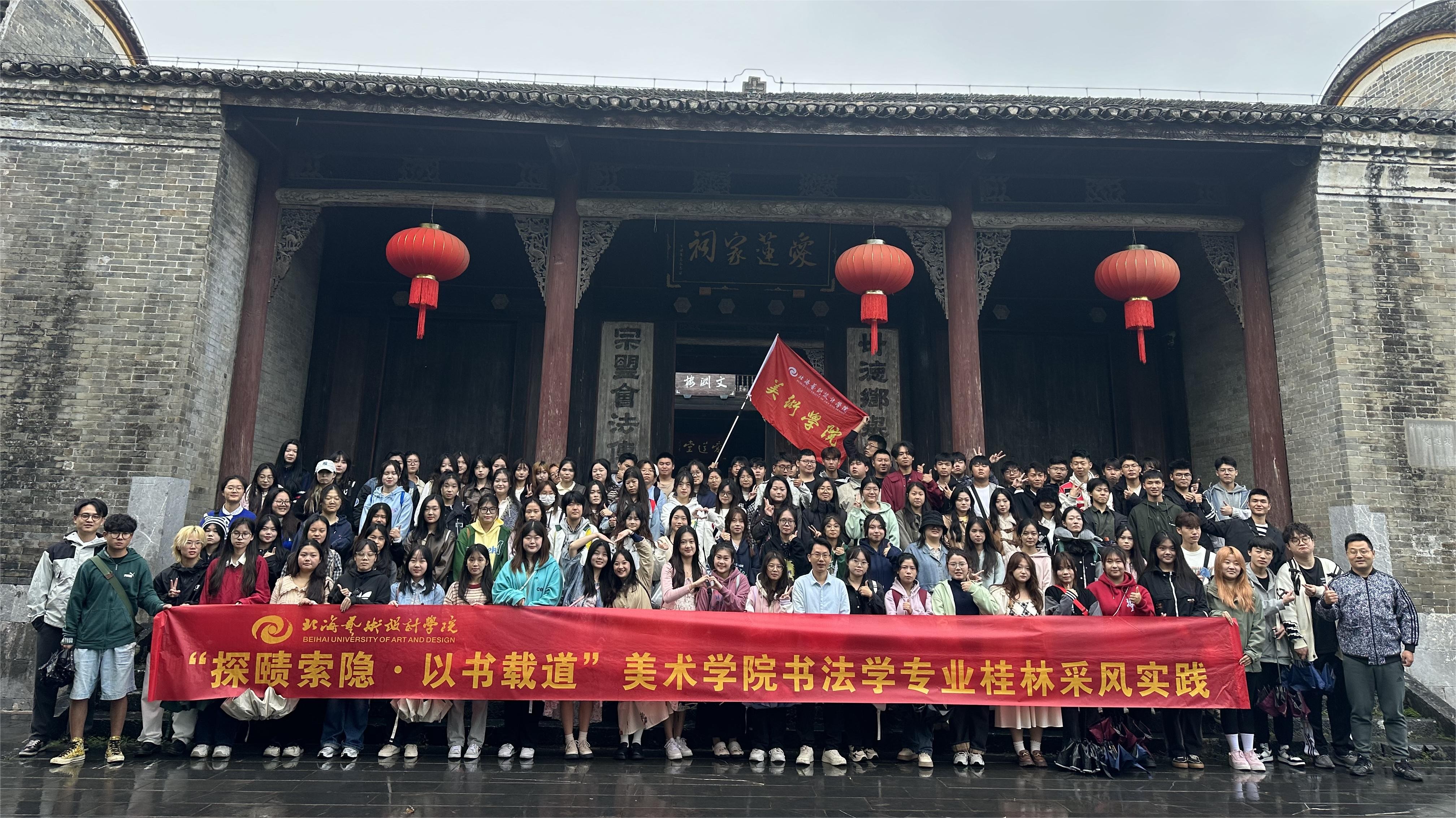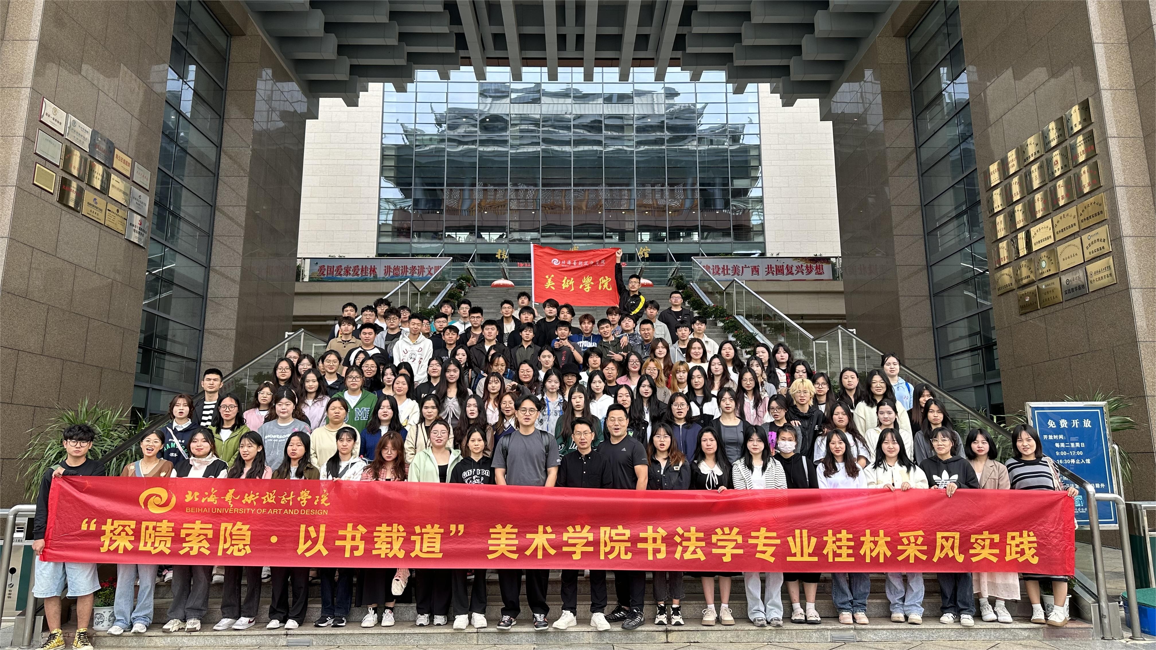 美术学院书法学专业2022级百余名学生2023年11月6日,由书法学教研室主任苏乃从及多位专业教师组织带领前往桂林开展“探赜索隐·以书载道”专业采风实践教学活动,重点考察桂林的历史文化、石刻艺术、考古遗迹风土人情红色文化山水风光等,旨在开拓学生的视野,积累艺术创作内涵。