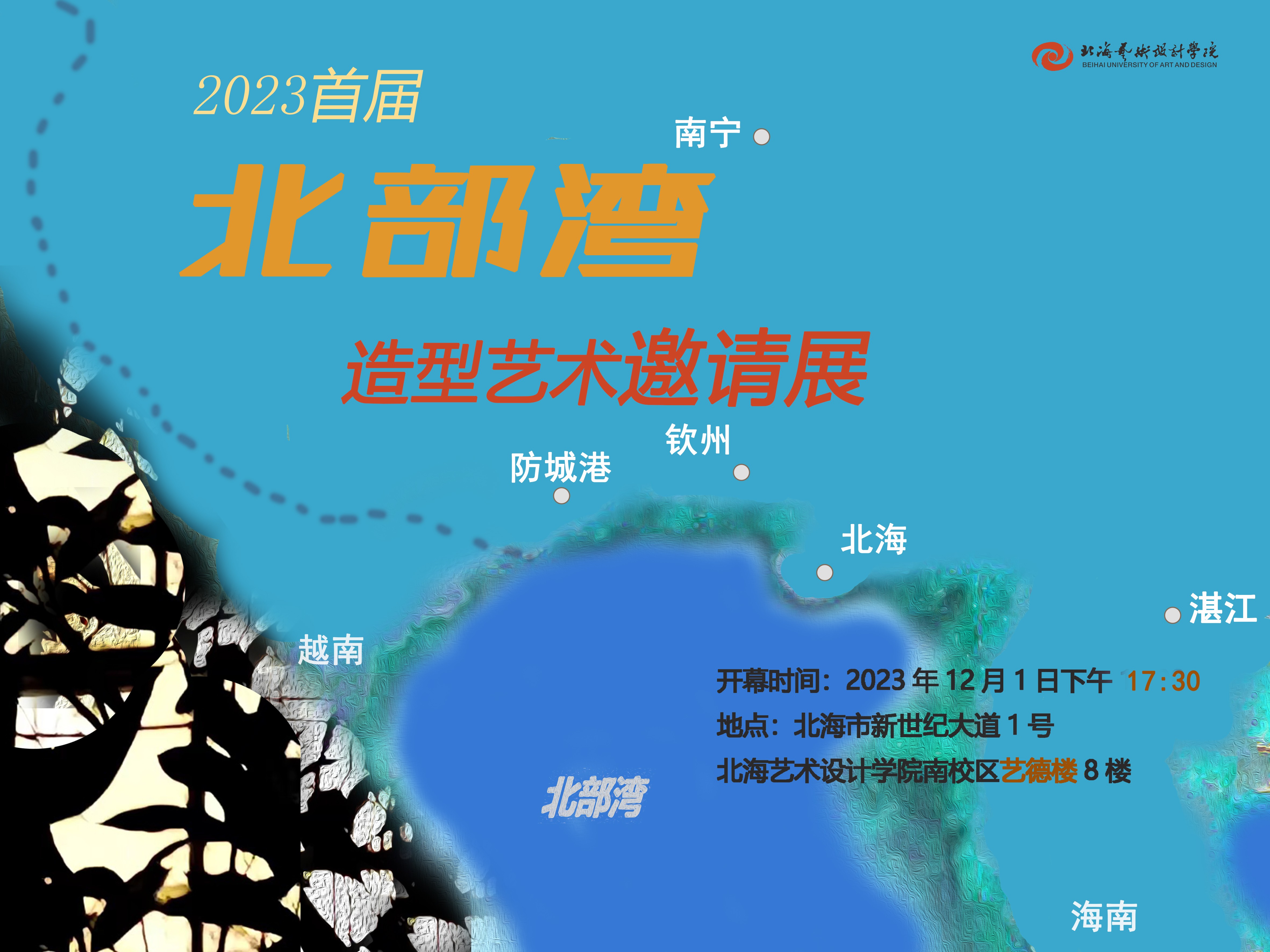 北部湾造型艺术邀请展是由北海艺术设计学院发起,以北海艺术设计学院、广西艺术学院、北部湾大学三校教师联合策划。于2023121日在北海艺术设计学院举办了首届北部湾造型艺术邀请展。此次邀请展共展出来自北海艺术设计学院、广西艺术学院和北部湾大学三所高校的部分教师雕塑作品60件、绘画作品30幅。