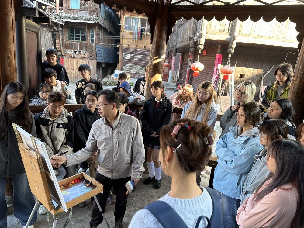 20241024日,湖北理工学院艺术学院陈政军教授应邀参加北海艺术设计学院美术学院学术活动,呈现了一场“专业写生--课程示范与学术讲座”的艺术盛宴。活动在雨雾萦绕的柳州市三江县程阳八寨景区平寨独柱鼓楼下进行,吸引了众多师生的参与。