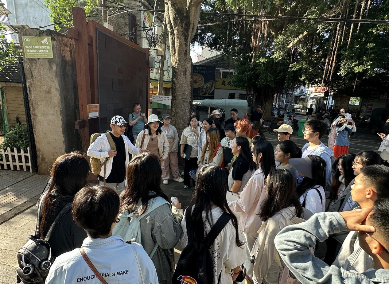 本次写生活动还融入了思想政治教育内容。在涠洲岛革命烈士纪念碑前,思想政治课教师罗秋梅讲述了涠洲岛的革命历史,带领学生回顾先辈们坚定信仰、无畏牺牲的英雄事迹。这一环节让学生们深刻体会到艺术创作与家国情怀的联系,进一步激发了他们对民族精神和人文关怀的思考。