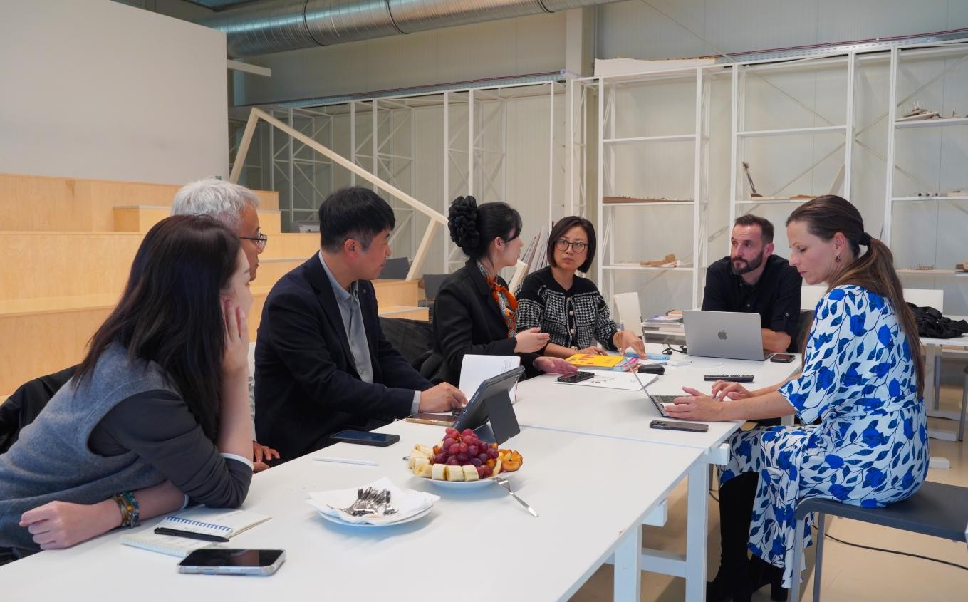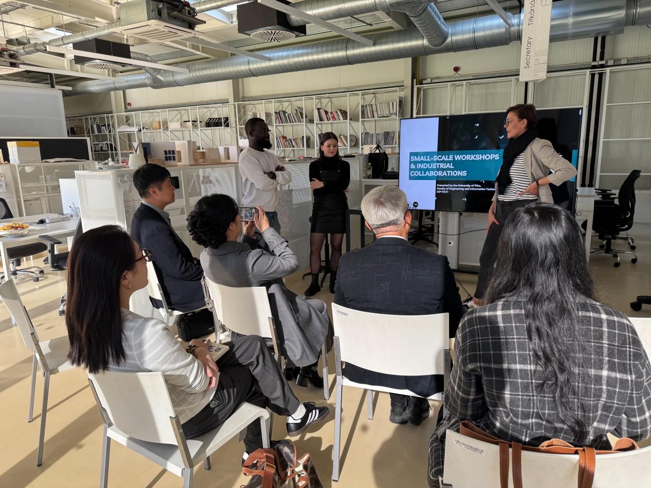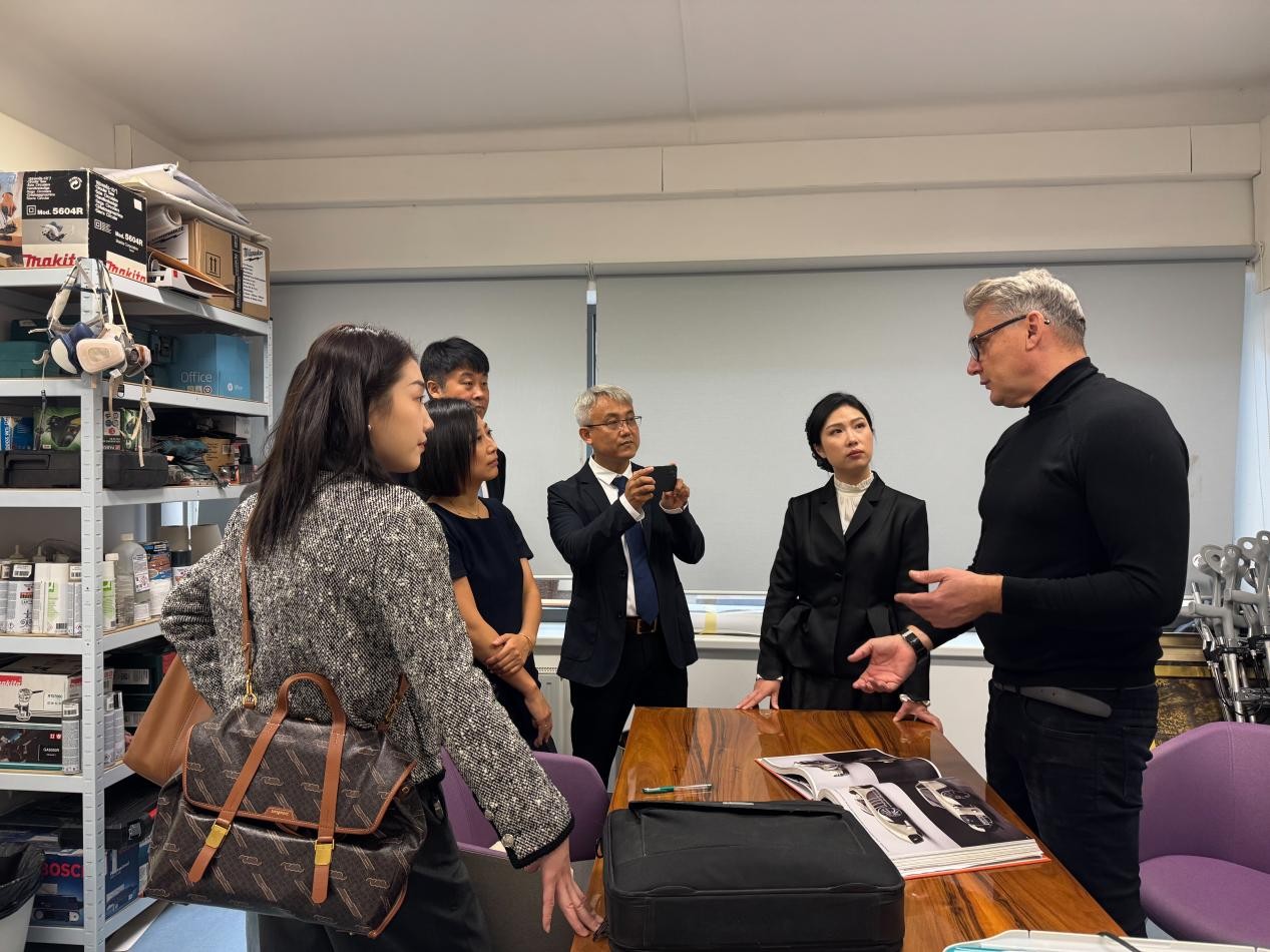 与此同时,代表团一行还参观了佩奇大学的设计实验室,该处集中展示了匈牙利设计教育领域的前沿探索与成果。佩奇大学机械工程系的Norbert教授向代表团阐述了该校的教学理念:“我们致力于引导学生在熟练掌握现代技术的同时,坚守传统工艺的精髓,因为这些是传统与创新相结合的设计灵感之源。”在校企合作单位考察环节,代表团参观了佩奇大型混凝土生产线,了解了建筑生态可循环理念和生产技术。