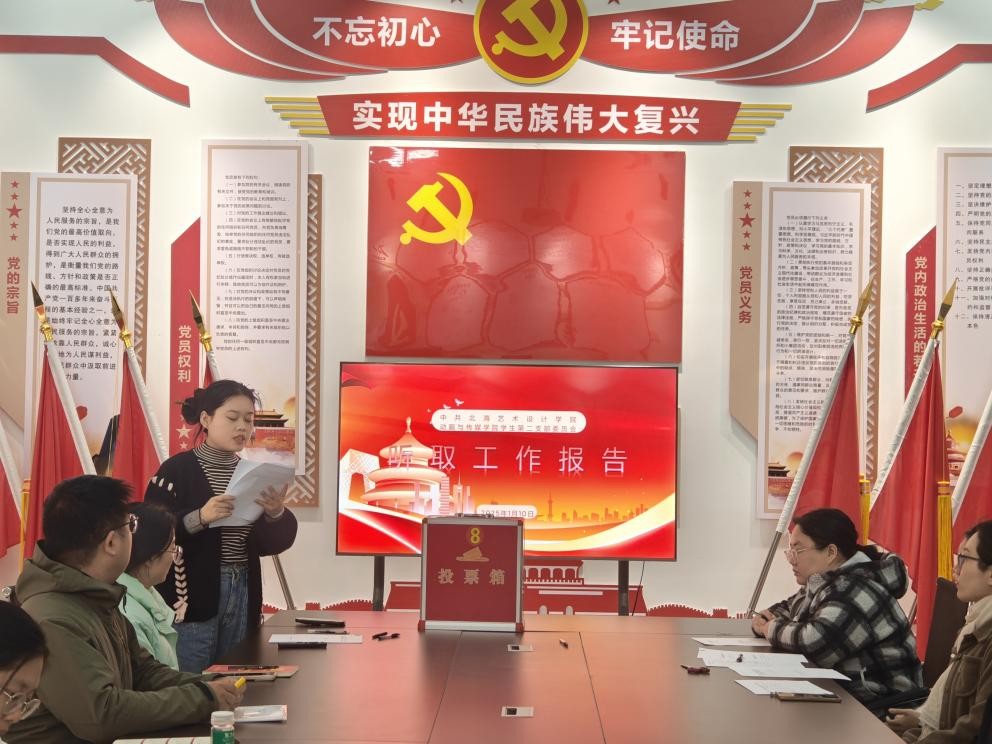 1月9日,动画与传媒学院学生第二党支部在上级党组织的指导下,顺利召开了党员大会,完成了党支部支委换届选举工作,开启了党支部建设的新篇章。