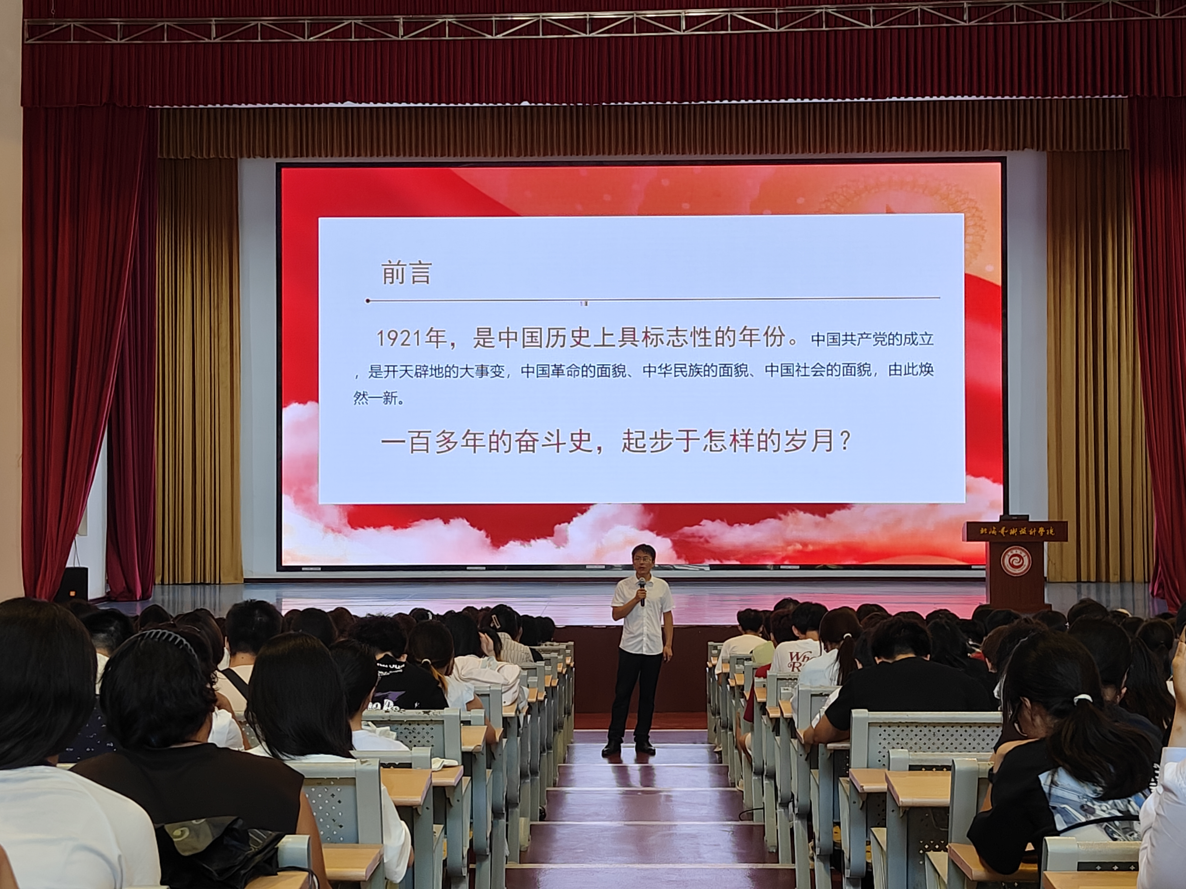 传媒艺术学院王明森书记以党史为脉络、以成长为导向,为新生指引向党组织靠拢的方向,助力其开启有信念、有目标的大学生活。