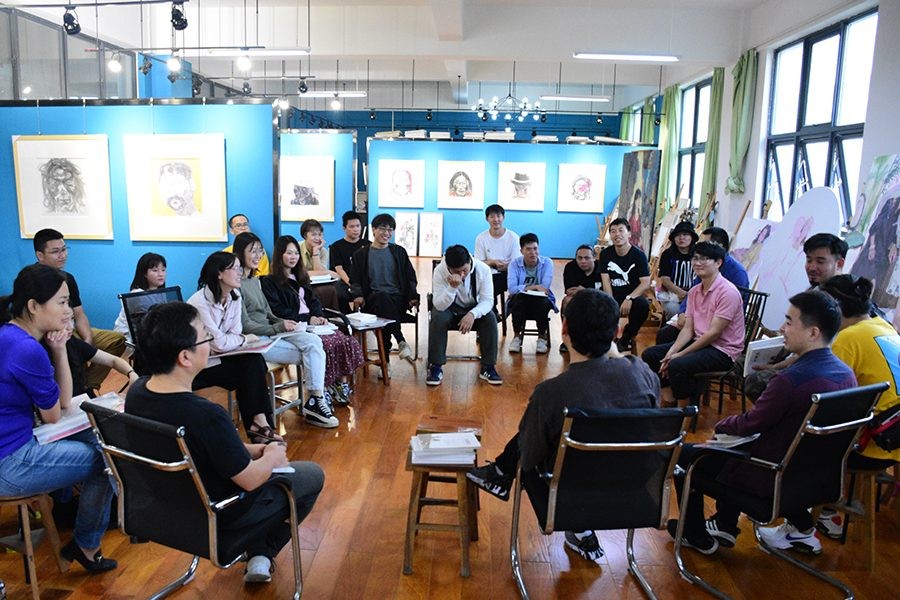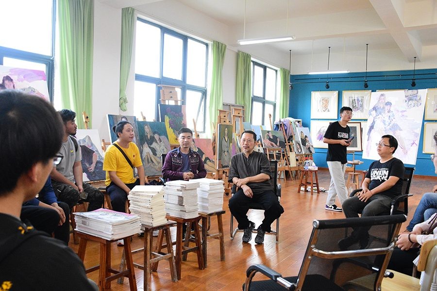 2020年11月25日星期三下午, 中央美术学院刘斌教授莅临美术学院艺术楼212开展绘画教学座谈会,本次交流会特邀美术学院常务副院长龚为以及美术学院绘画专业教师参加。