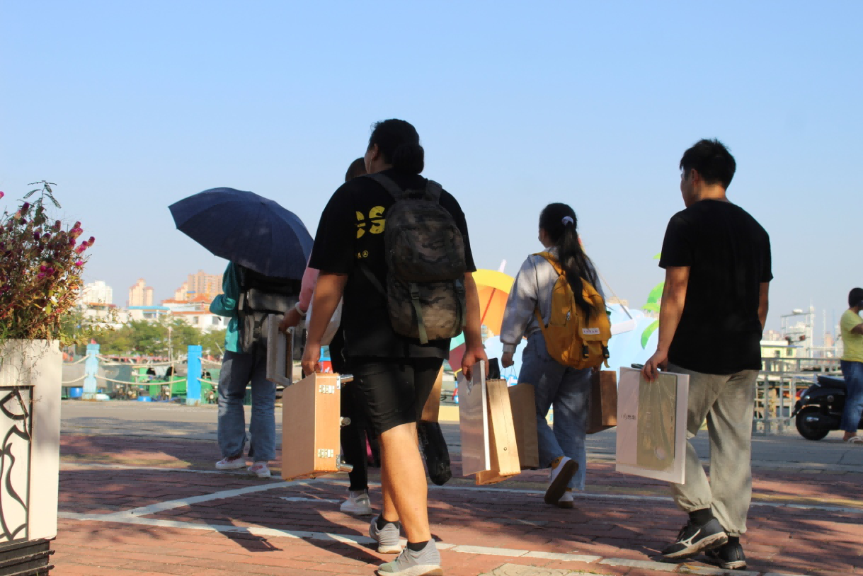 受主办方的邀请,北海艺术设计学院美术学院三十多名师生于4:30分到达侨港风情码头并投入绘画。