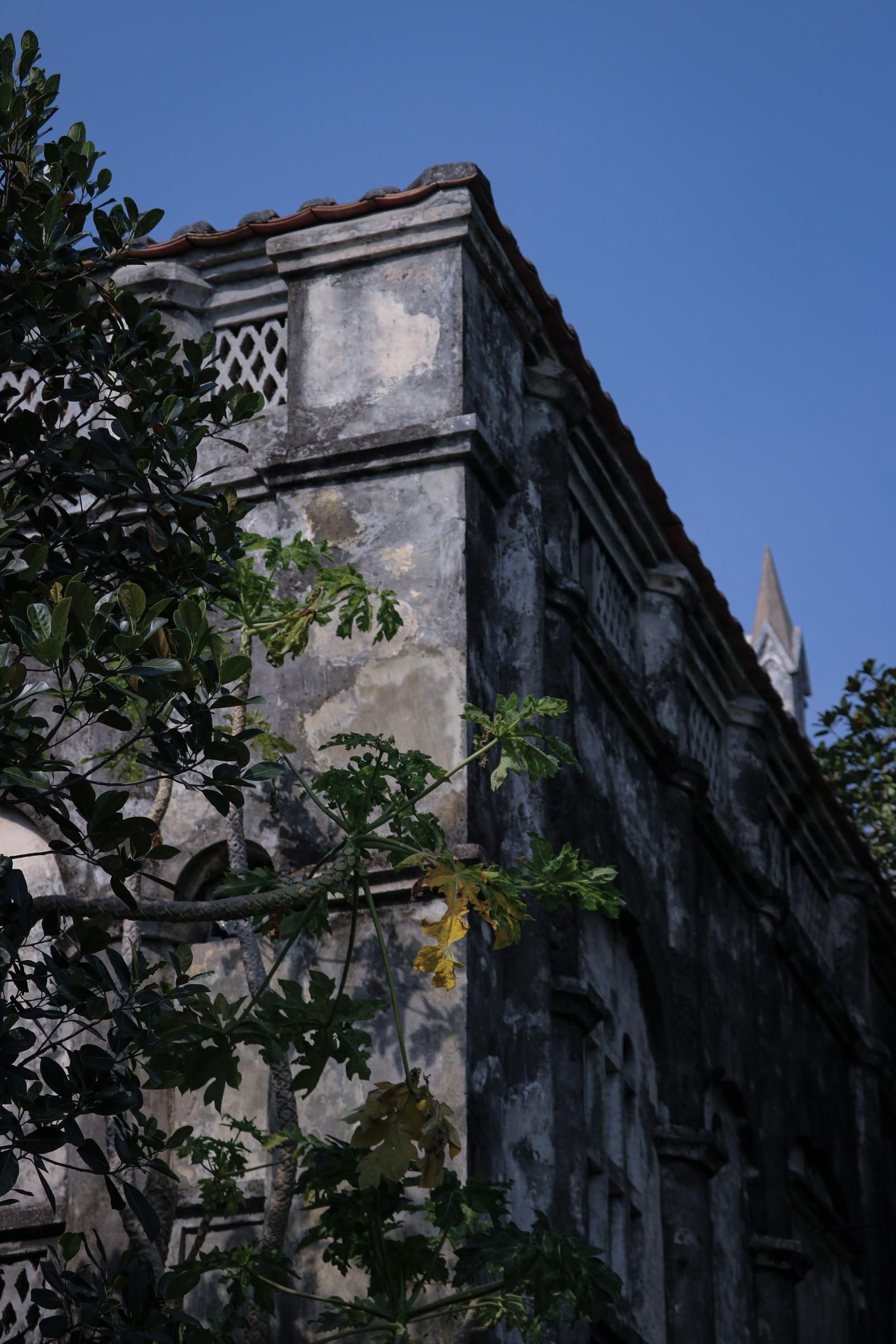老师带领着学生们展开了五天四夜的写生生活,住在名宿夜晚下课,可以在海边吹着海风,感受着大自然的洗礼。在涠洲岛上低矮的民居中间,有一座有着高耸的罗马式尖塔,法国文艺复兴时期的哥特式建筑,夺人眼目。沧海桑田,星移斗转,教堂墙上的斑驳诉说着历史,诉说着记忆。它历经了风雨的打磨,战争的硝烟,往事已逐渐模糊,唯有建筑孤独地坚守这里,成为时空轮回的说书人,承接着这座岛的过去与未来。