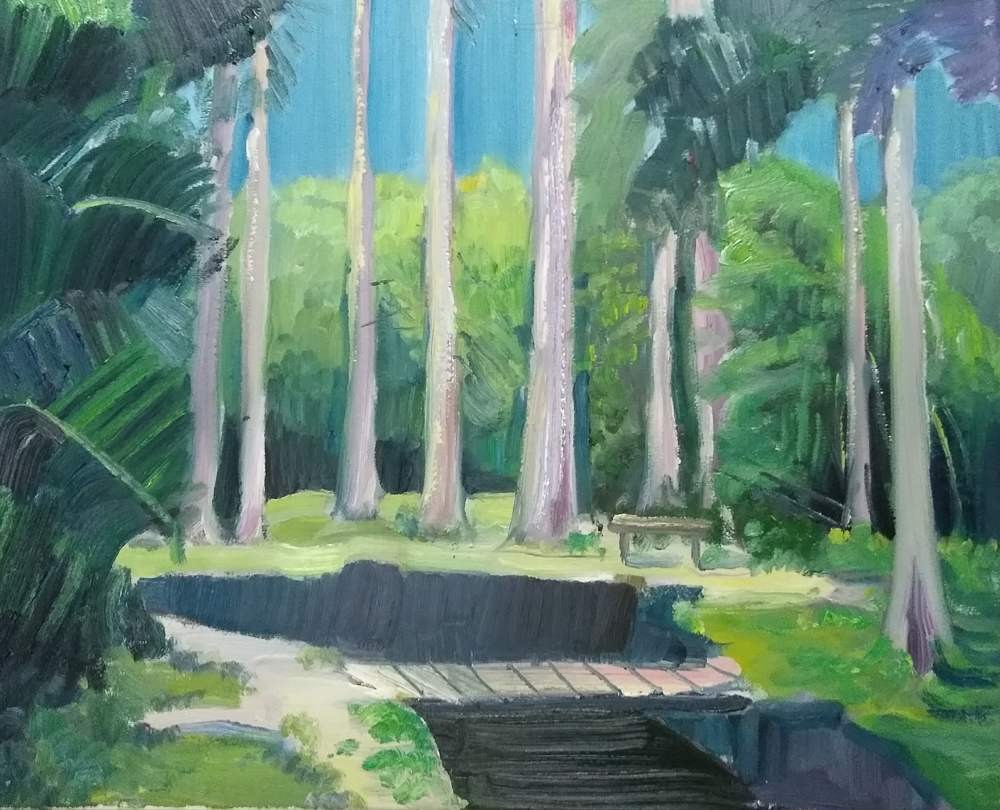 本次校园写生活动为期五天。师生分别集中在东、西校区取景作画进行写生。入冬后,空气中夹杂着丝丝冷意,北风也加快了南下的步伐,略带寒风,可是没有影响到同学们手中的画笔,他们或是坐在绿荫下,亦或是在校园路旁,三两成群,安静作画。
