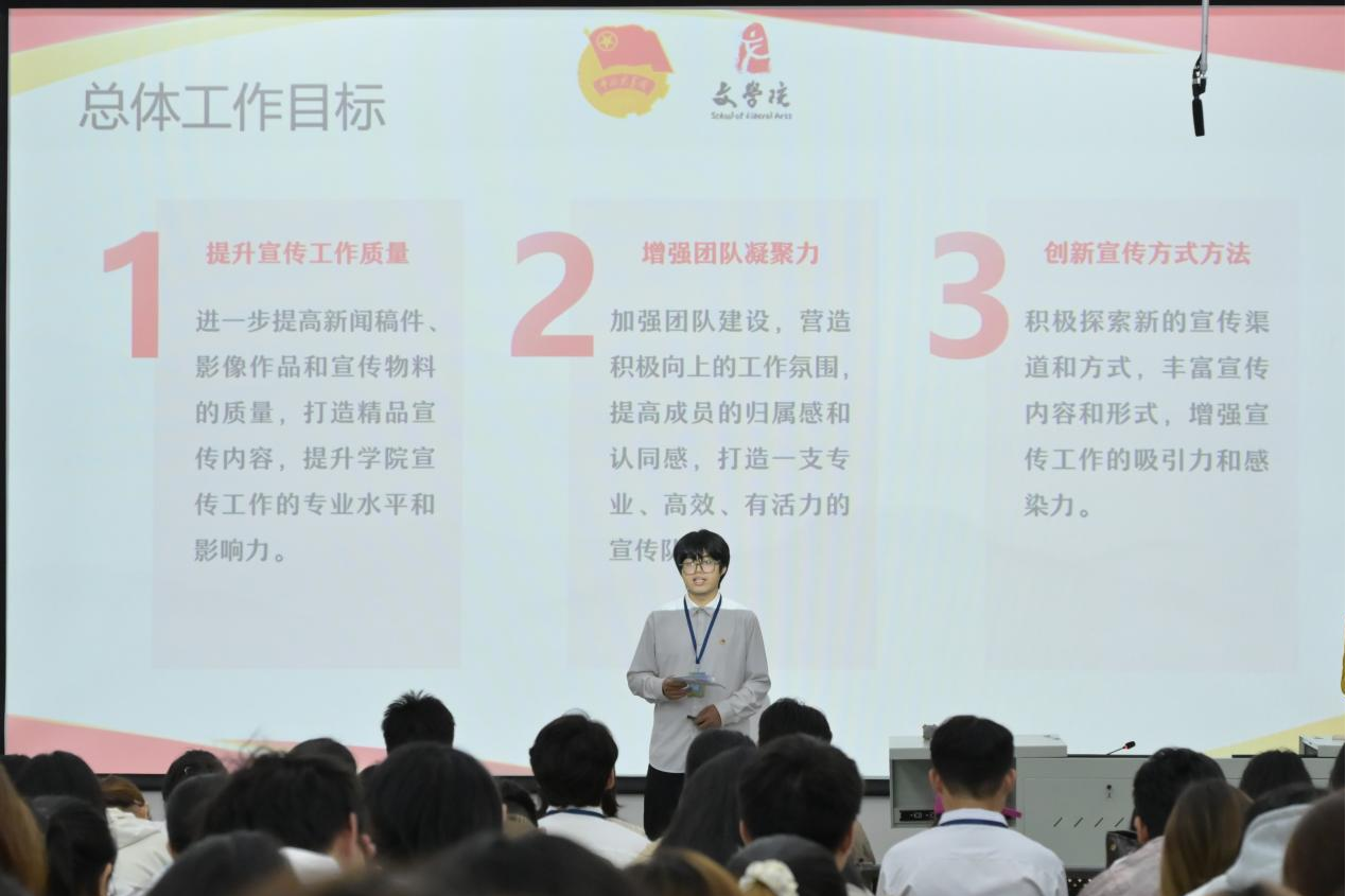 本次会议既是对本学期工作的系统总结,也为下学期的工作指明了方向。文学院分团委将以此为新起点,保持踔厉奋发的昂扬干劲,扎实履职尽责,继续以饱满的热情、务实的作风投入工作,不断书写文学院分团委发展的崭新篇章。(陈淑文/摄)