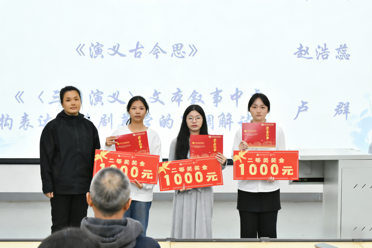 至此,本次颁奖典礼圆满落幕。此次活动不仅为同学们搭建了一个以文会友、碰撞思想的平台,更在校园内营造了崇尚经典、热爱阅读的良好氛围。未来,文学院也将以赛促学以活动为载体,继续深耕人文教育,鼓励学子与经典对话汲取智慧、不断成长,让人文之光点亮青春、思辨之花在校园绽放。(吴正玉/摄