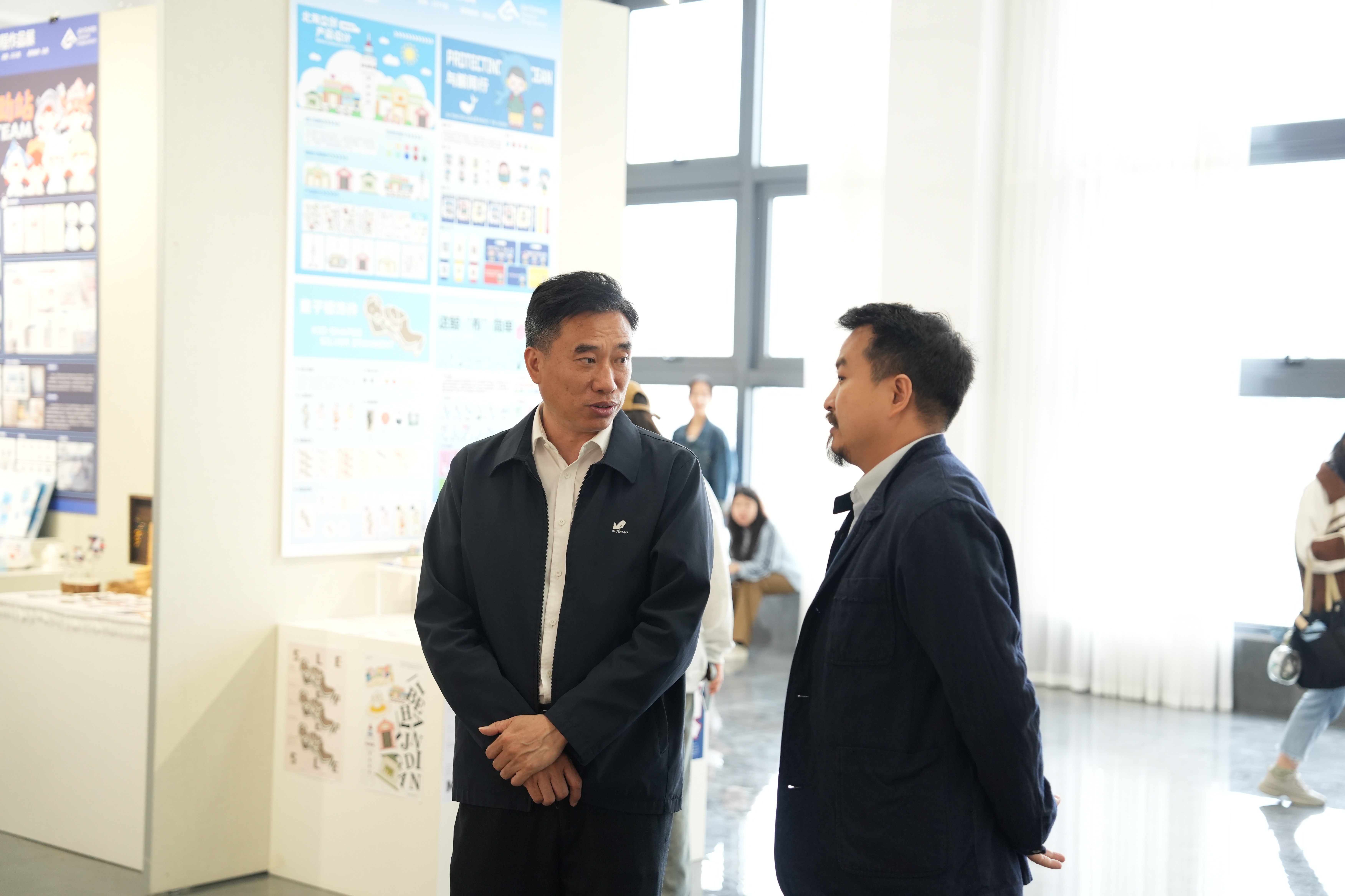 开展仪式上,陶立阳副校长在致辞中强调本次展览深入贯彻了全国教育大会精神,全面展示了同学们在视觉艺术创作上的卓越成就,生动诠释了学校“以德铸魂、以文化人、以美育人”的素质教育理念。他提到,文创产品设计课程应利用人工智能技术推动多元文化交流,探索设计服务地方经济的新路径,为地方文化产业注入新的活力。