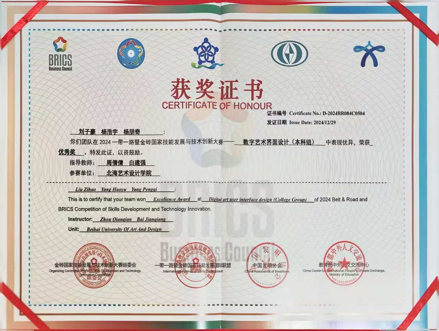 设计艺术学院师生在2024一带一路暨金砖国家技能发展与技术创新大赛——数字艺术界面设计(本科组)中斩获多项荣誉