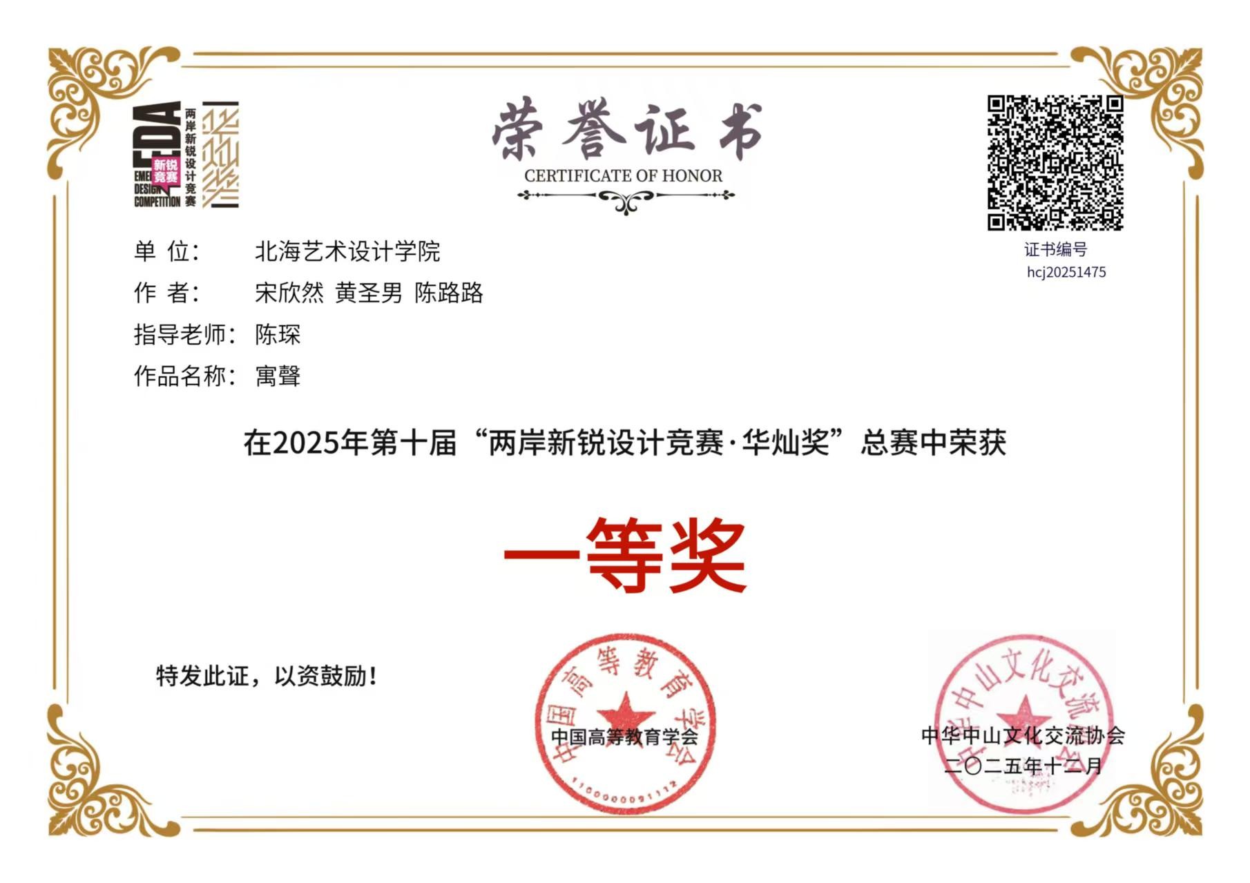 由中国高等教育学会、中华中山文化交流协会主办的第十届两岸新锐设计竞赛·华灿奖,连续十年进入《全国普通高校学科竞赛排行榜内竞赛项目名单》。本届华灿奖以“融·合”为主题,共吸引全国1600余所高校参与。竞赛面向青年设计师和高校师生,以创新、时尚、实用为评审原则,选拔最具创新意识和培养潜力的青年设计人才,从而增进两岸四地青年设计人才的交流与互动,推动中国设计事业的创新发展。