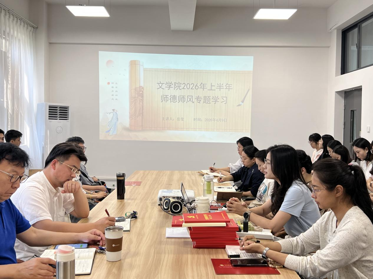 为深入学习习近平总书记关于教育的重要论述和全国、全区教育大会精神,全面落实立德树人根本任务,进一步引导广大教师涵养高尚师德、筑牢育人根基,4月9日上午,文学院在南区体育馆105会议室召开 2026 年上半年师德师风专题学习会议学院全体教职工参会,会议由岳莹书记主持学习。