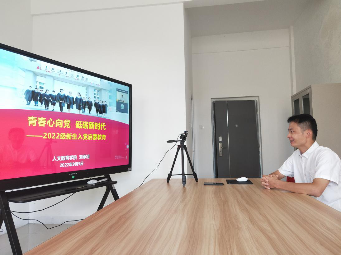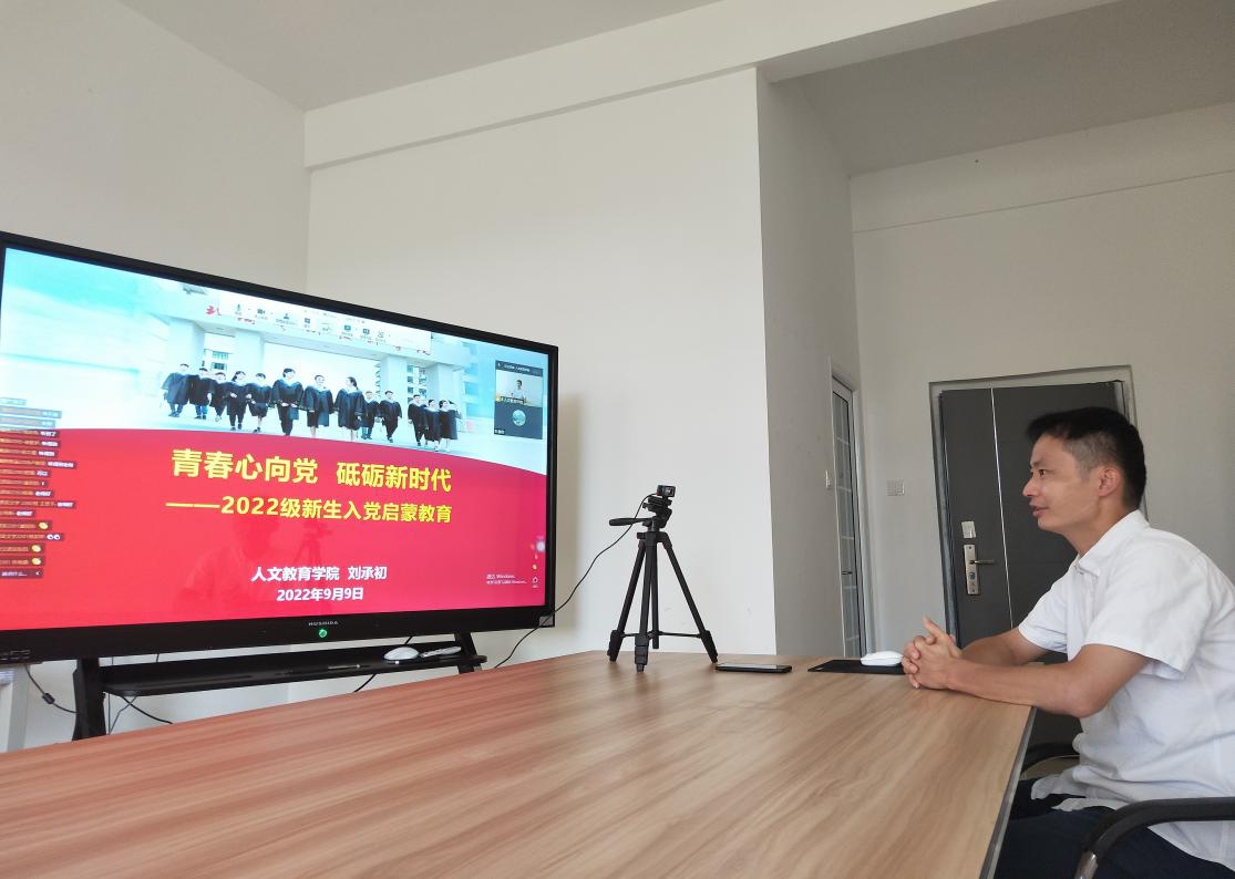 为深入学习贯彻习近平新时代中国特色社会主义思想和党的十九大、十九届历次全会精神以及自治区第十二次党代会精神,全面落实新时代党的建设总要求和新时代党的组织路线,落实立德树人根本任务,深入开展2022级新生党的基本知识教育,切实加强大学生思想政治教育,以优异成绩迎接党的二十大胜利召开,20229月9日,人文教育学院以线上视频会议的形式开展了主题为“青春心向党,砥砺新时代”新生入党启蒙教育讲座。本次讲座由我院党总支书记刘承初主讲,我院学工办主任谢伟主持。人文教育学院2022级全体新生参加了本次讲座。