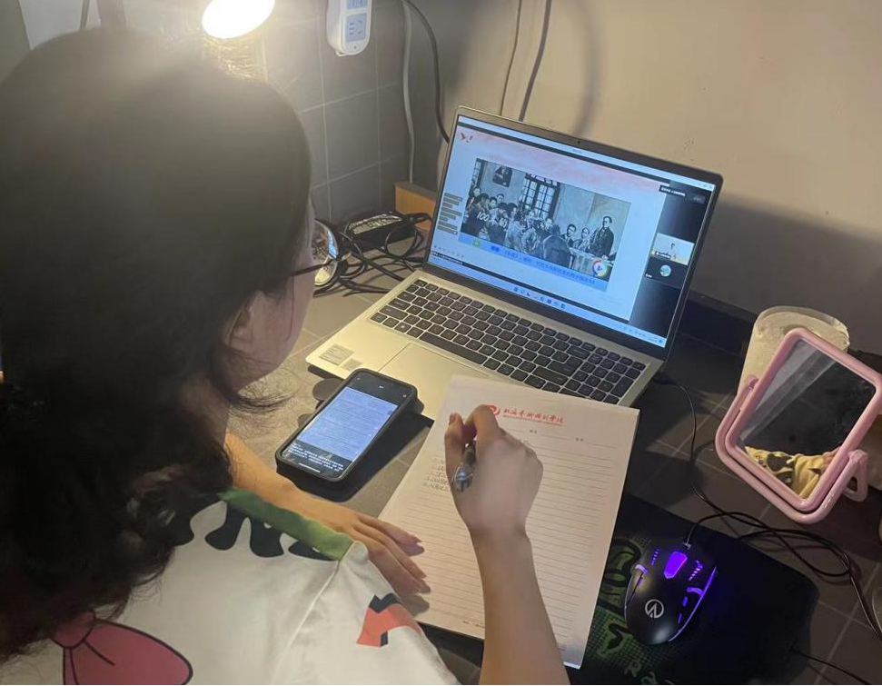 (刘承初书记以线上视频会议的形式进行讲授)