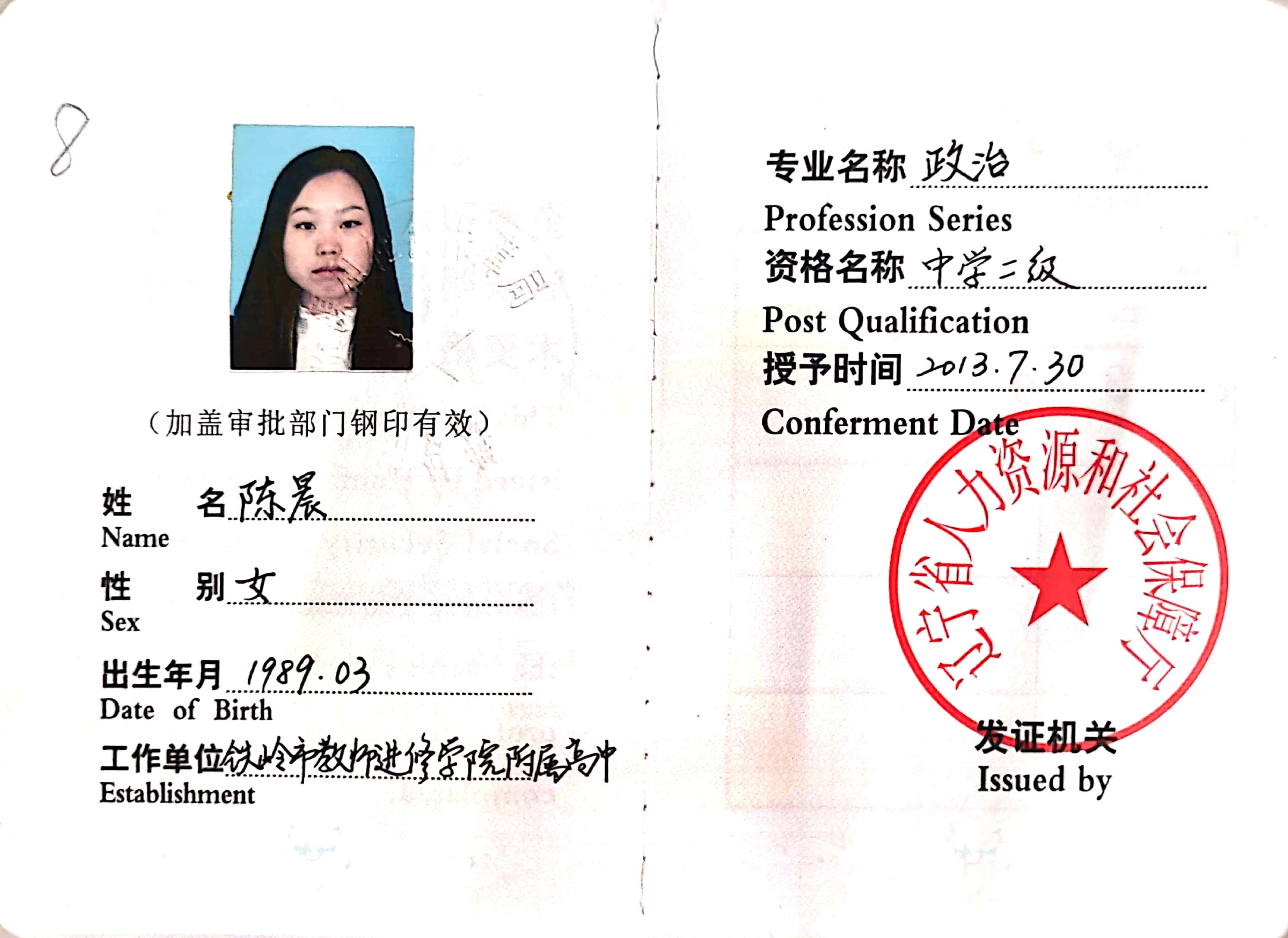 关于对陈晨等同志职称重新确认申报材料进行公示的公告