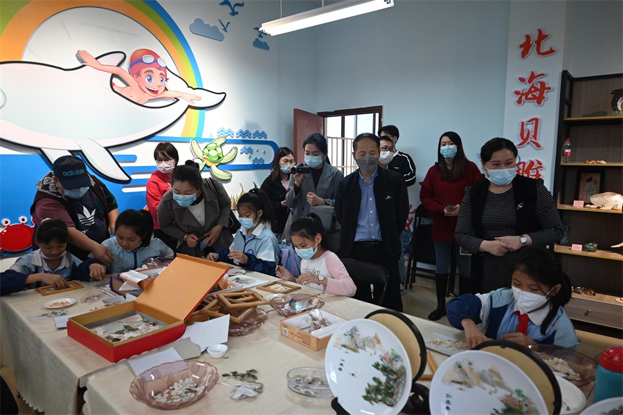 郭庆教授和考察团队一行到北海艺术设计学院附属学校“校校协同”项目进行考察。该校校长包玉红热情欢迎考察团队的来访,并带领考察团参观学校环境。在校训“道德”石碑前,包校长向郭教授及考察团成员介绍了两校一衣带水,一脉相承的历史渊源,对两校的合作过程中北艺对附校的帮助与支持表示感谢。随后一行人在北艺附校会议室进行了深入的座谈和交流。