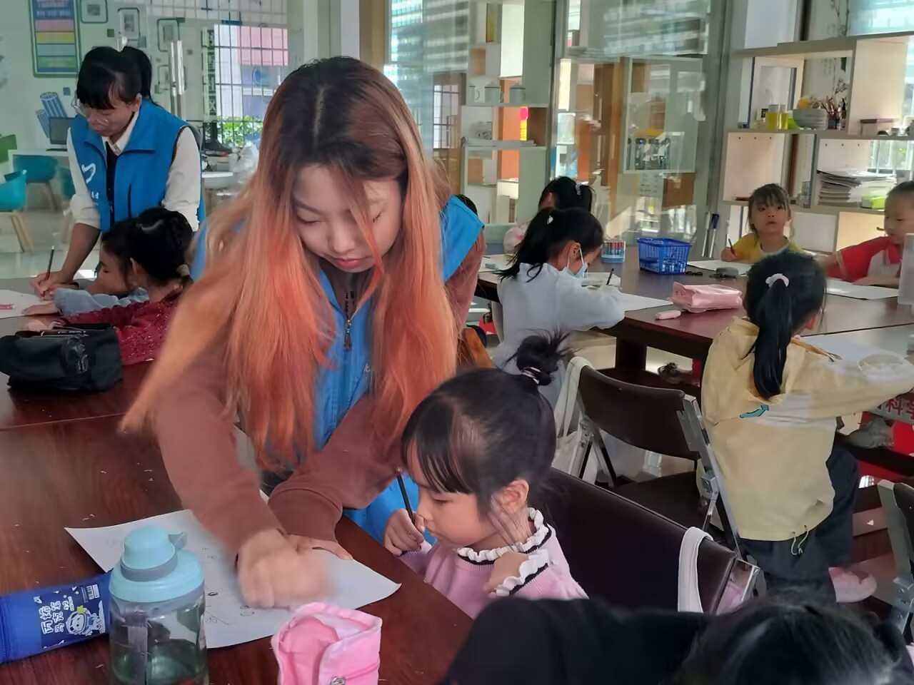 贡献青春力量,书写青年担当。2023年11月18日,我校团委青年志愿者协会数名志愿者前往北部湾社区、赤东村、疍家小镇和侨北社区开展本周的支教课堂。此次周末课堂包含了绘画创作和手工创作两种形式,志愿者们将自身所学知识融入实践中,耐心教导每一位学生,帮助他们创造出独具个人特色的作品。
